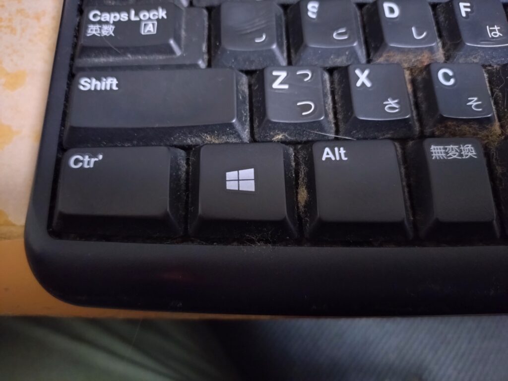 あと、クセのあるタイピングをしているせいでAを左手小指で、Mを右人差し指で削ってしまって誤打多発、ホームポジション確認用のFキーとJキーのポチポチも削れてツルツル。