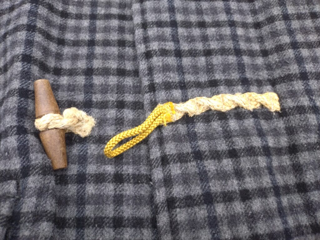 去年、私を彼氏だと思い込んでる迷惑女子が、ダッフルコートのヒモを修理できると言うから預けたんですよ。